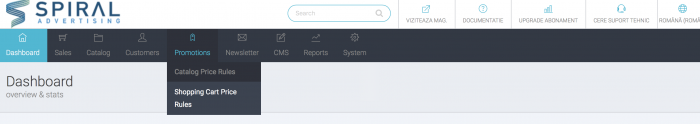 - MentiuniAceasta documentatie este realizata doar pentru clientii Spiral Advertising, avand la baza platforma originala Magento. Imaginile regasite in documentatie reprezinta backend-ul magazinelor Spiral Advertising.